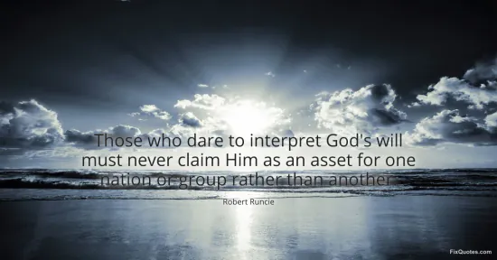 Runcie, Robert. (2026, January 16). Those who dare to interpret God's will must never claim Him as an asset for one nation or group rather than another. FixQuotes. https://fixquotes.com/quotes/those-who-dare-to-interpret-gods-will-must-never-113360/