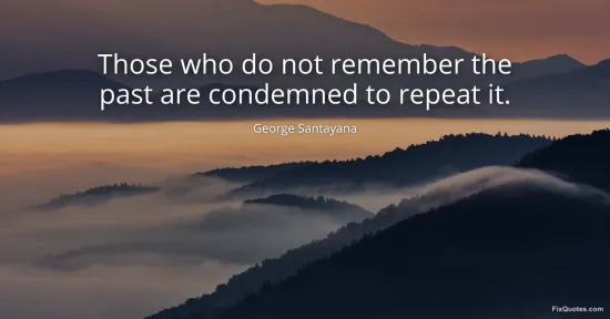 Santayana, George. (2026, January 13). Those who do not remember the past are condemned to repeat it. FixQuotes. https://fixquotes.com/quotes/those-who-do-not-remember-the-past-are-condemned-17699/