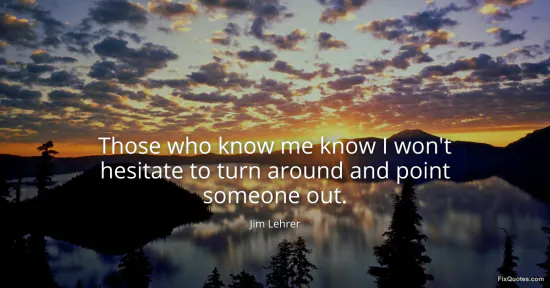Lehrer, Jim. "Those who know me know I won't hesitate to turn around and point someone out." FixQuotes. January 15, 2026. https://fixquotes.com/quotes/those-who-know-me-know-i-wont-hesitate-to-turn-160444/.