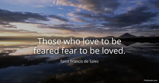 Sales, Saint Francis de. "Those who love to be feared fear to be loved." FixQuotes. February 10, 2026. https://fixquotes.com/quotes/those-who-love-to-be-feared-fear-to-be-loved-71383/.