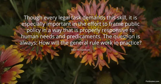 Richardson, Elliot. (2026, January 15). Though every legal task demands this skill, it is especially important in the effort to frame public policy in a way that is properly responsive to human needs and predicaments. The question is always: How will the general rule work in practice? FixQuotes. https://fixquotes.com/quotes/though-every-legal-task-demands-this-skill-it-is-73062/