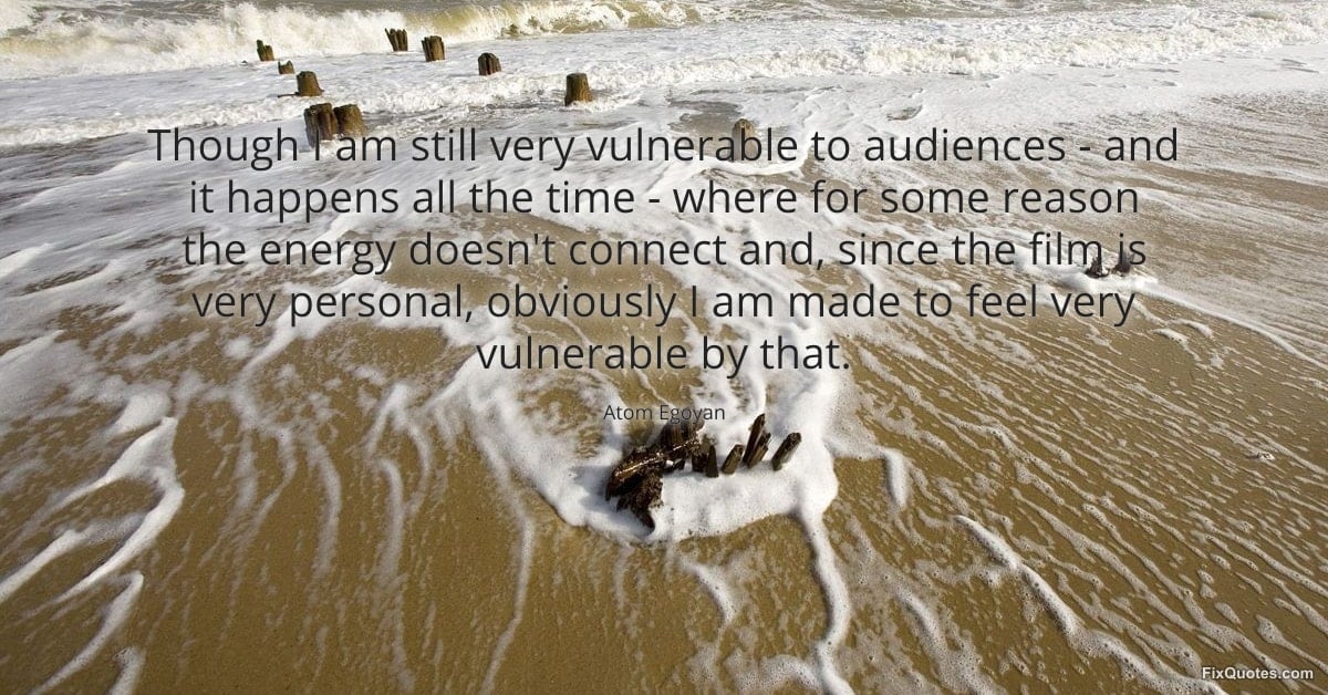 Egoyan, Atom. "Though I am still very vulnerable to audiences - and it happens all the time - where for some reason the energy doesn't connect and, since the film is very personal, obviously I am made to feel very vulnerable by that." FixQuotes. January 15, 2026. https://fixquotes.com/quotes/though-i-am-still-very-vulnerable-to-audiences-43118/.