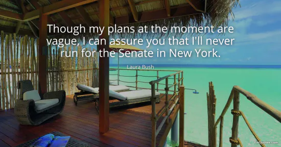 Bush, Laura. "Though my plans at the moment are vague, I can assure you that I'll never run for the Senate in New York." FixQuotes. January 18, 2026. https://fixquotes.com/quotes/though-my-plans-at-the-moment-are-vague-i-can-12504/.