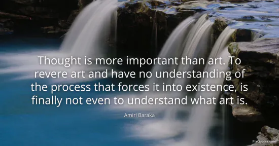 Baraka, Amiri. (2026, January 17). Thought is more important than art. To revere art and have no understanding of the process that forces it into existence, is finally not even to understand what art is. FixQuotes. https://fixquotes.com/quotes/thought-is-more-important-than-art-to-revere-art-62476/