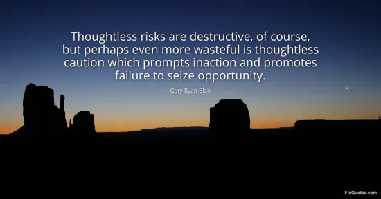 Blair, Gary Ryan. (2026, January 17). Thoughtless risks are destructive, of course, but perhaps even more wasteful is thoughtless caution which prompts inaction and promotes failure to seize opportunity. FixQuotes. https://fixquotes.com/quotes/thoughtless-risks-are-destructive-of-course-but-54018/