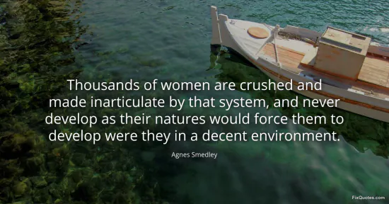 Smedley, Agnes. "Thousands of women are crushed and made inarticulate by that system, and never develop as their natures would force them to develop were they in a decent environment." FixQuotes. February 19, 2026. https://fixquotes.com/quotes/thousands-of-women-are-crushed-and-made-33624/.