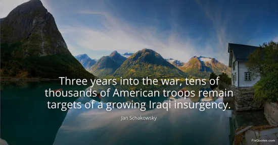 Schakowsky, Jan. "Three years into the war, tens of thousands of American troops remain targets of a growing Iraqi insurgency." FixQuotes. January 17, 2026. https://fixquotes.com/quotes/three-years-into-the-war-tens-of-thousands-of-56989/.