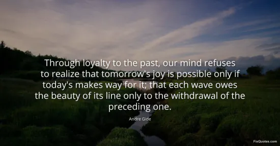 Gide, Andre. (2026, January 18). Through loyalty to the past, our mind refuses to realize that tomorrow's joy is possible only if today's makes way for it; that each wave owes the beauty of its line only to the withdrawal of the preceding one. FixQuotes. https://fixquotes.com/quotes/through-loyalty-to-the-past-our-mind-refuses-to-11778/