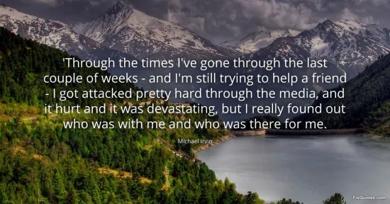 Irvin’s sentence has the breathless cadence of someone still inside the bruise. The repetition - "through the times I've gone through" and "the last couple of weeks" - isn’t elegant; it’s defensive. He’s building a timeline in real time, insisting this isn’t abstract drama but a concentrated, recent hit. When an athlete says he was "attacked pretty hard through the media", he’s not just complaining about bad press. He’s pointing to a modern power imbalance: the story about you can travel faster, stick longer, and feel more real than your own version of events.