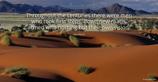 Rand, Ayn. (2026, January 18). Throughout the centuries there were men who took first steps, down new roads, armed with nothing but their own vision. FixQuotes. https://fixquotes.com/quotes/throughout-the-centuries-there-were-men-who-took-4480/
