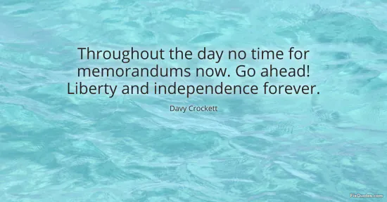 Crockett, Davy. (2026, January 18). Throughout the day no time for memorandums now. Go ahead! Liberty and independence forever. FixQuotes. https://fixquotes.com/quotes/throughout-the-day-no-time-for-memorandums-now-go-18986/