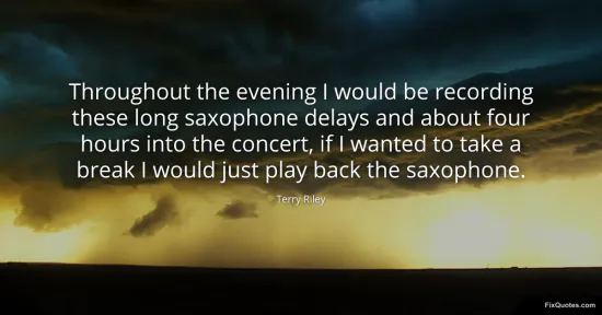 Riley, Terry. (2026, January 17). Throughout the evening I would be recording these long saxophone delays and about four hours into the concert, if I wanted to take a break I would just play back the saxophone. FixQuotes. https://fixquotes.com/quotes/throughout-the-evening-i-would-be-recording-these-78465/