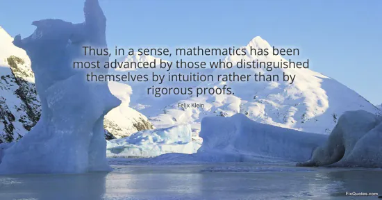 Klein, Felix. "Thus, in a sense, mathematics has been most advanced by those who distinguished themselves by intuition rather than by rigorous proofs." FixQuotes. January 16, 2026. https://fixquotes.com/quotes/thus-in-a-sense-mathematics-has-been-most-119459/.