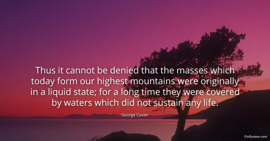 Cuvier, George. "Thus it cannot be denied that the masses which today form our highest mountains were originally in a liquid state; for a long time they were covered by waters which did not sustain any life." FixQuotes. January 14, 2026. https://fixquotes.com/quotes/thus-it-cannot-be-denied-that-the-masses-which-55166/.