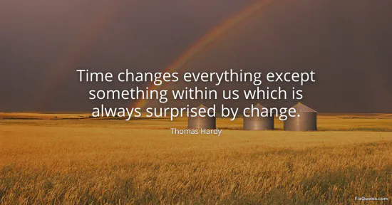 Hardy pins a small psychological paradox to the wall: we live inside time, watch it remaking faces, towns, beliefs, and still there is a stubborn kernel in us that reacts like a newcomer. The line isn’t sentimental about “growth”; it’s quietly accusatory. If time truly “changes everything,” why do we keep meeting change as if it violates the rules?