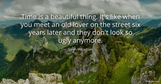 McLachlan, Sarah. "Time is a beautiful thing. It's like when you meet an old lover on the street six years later and they don't look so ugly anymore." FixQuotes. January 16, 2026. https://fixquotes.com/quotes/time-is-a-beautiful-thing-its-like-when-you-meet-109888/.