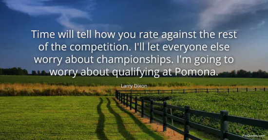 Dixon, Larry. (2026, January 16). Time will tell how you rate against the rest of the competition. I'll let everyone else worry about championships. I'm going to worry about qualifying at Pomona. FixQuotes. https://fixquotes.com/quotes/time-will-tell-how-you-rate-against-the-rest-of-136714/