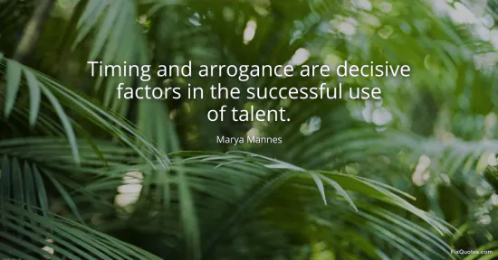 Mannes, Marya. (2026, January 16). Timing and arrogance are decisive factors in the successful use of talent. FixQuotes. https://fixquotes.com/quotes/timing-and-arrogance-are-decisive-factors-in-the-127802/