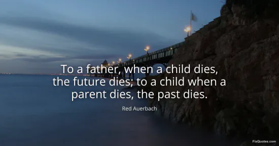 Auerbach, Red. "To a father, when a child dies, the future dies; to a child when a parent dies, the past dies." FixQuotes. January 15, 2026. https://fixquotes.com/quotes/to-a-father-when-a-child-dies-the-future-dies-to-170179/.