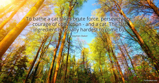 Baker, Stephen. (2026, January 16). To bathe a cat takes brute force, perseverance, courage of conviction - and a cat. The last ingredient is usually hardest to come by. FixQuotes. https://fixquotes.com/quotes/to-bathe-a-cat-takes-brute-force-perseverance-133674/