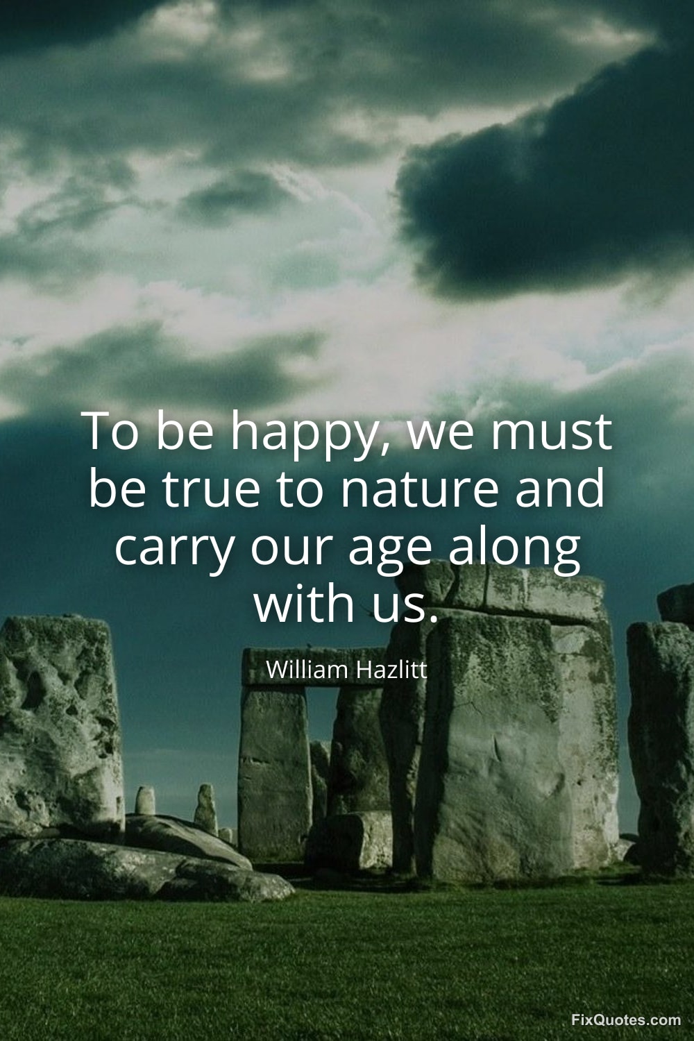 Hazlitt, William. (2026, February 9). To be happy, we must be true to nature and carry our age along with us. FixQuotes. https://fixquotes.com/quotes/to-be-happy-we-must-be-true-to-nature-and-carry-78924/