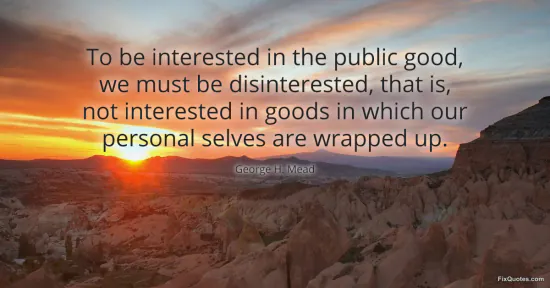 Mead, George H. "To be interested in the public good, we must be disinterested, that is, not interested in goods in which our personal selves are wrapped up." FixQuotes. February 19, 2026. https://fixquotes.com/quotes/to-be-interested-in-the-public-good-we-must-be-53096/.
