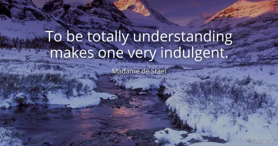 Stael, Madame de. (2026, January 18). To be totally understanding makes one very indulgent. FixQuotes. https://fixquotes.com/quotes/to-be-totally-understanding-makes-one-very-13150/