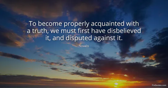 Novalis. "To become properly acquainted with a truth, we must first have disbelieved it, and disputed against it." FixQuotes. January 18, 2026. https://fixquotes.com/quotes/to-become-properly-acquainted-with-a-truth-we-8009/.