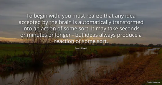 Reed, Scott. (2026, January 14). To begin with, you must realize that any idea accepted by the brain is automatically transformed into an action of some sort. It may take seconds or minutes or longer - but ideas always produce a reaction of some sort. FixQuotes. https://fixquotes.com/quotes/to-begin-with-you-must-realize-that-any-idea-129293/