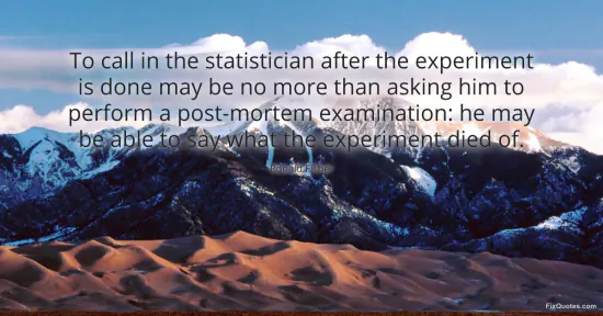 "To call in the statistician after the experiment is done may be no more than asking him to perform a post-mortem examination: he may be able to say what the experiment died of." FixQuotes, 15 Jan. 2026, https://fixquotes.com/quotes/to-call-in-the-statistician-after-the-experiment-19614/. Accessed 12 Feb. 2026.