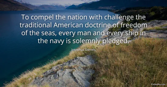 Daniels, Josephus. "To compel the nation with challenge the traditional American doctrine of freedom of the seas, every man and every ship in the navy is solemnly pledged." FixQuotes. January 15, 2026. https://fixquotes.com/quotes/to-compel-the-nation-with-challenge-the-91948/.