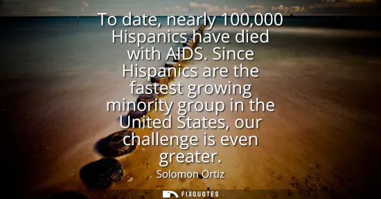 "To date, nearly 100,000 Hispanics have died with AIDS. Since Hispanics are the fastest growing minority group in the United States, our challenge is even greater"