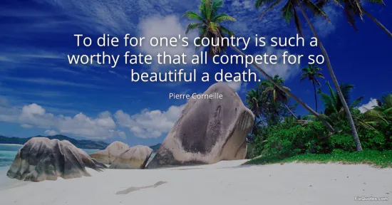 Corneille, Pierre. "To die for one's country is such a worthy fate that all compete for so beautiful a death." FixQuotes. January 16, 2026. https://fixquotes.com/quotes/to-die-for-ones-country-is-such-a-worthy-fate-128642/.