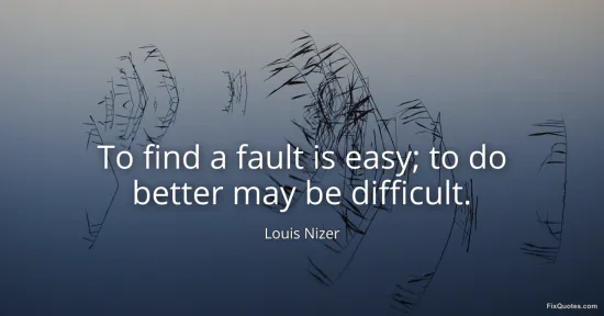 Nizer, Louis. (2026, January 16). To find a fault is easy; to do better may be difficult. FixQuotes. https://fixquotes.com/quotes/to-find-a-fault-is-easy-to-do-better-may-be-87915/