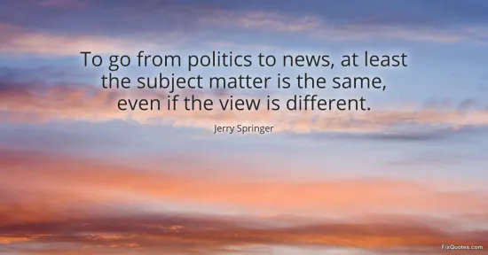 Springer, Jerry. (2026, January 16). To go from politics to news, at least the subject matter is the same, even if the view is different. FixQuotes. https://fixquotes.com/quotes/to-go-from-politics-to-news-at-least-the-subject-113134/