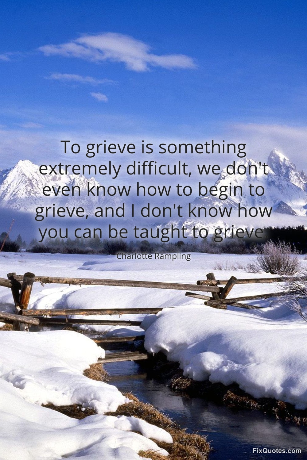 Rampling, Charlotte. (2026, January 17). To grieve is something extremely difficult, we don't even know how to begin to grieve, and I don't know how you can be taught to grieve. FixQuotes. https://fixquotes.com/quotes/to-grieve-is-something-extremely-difficult-we-51039/