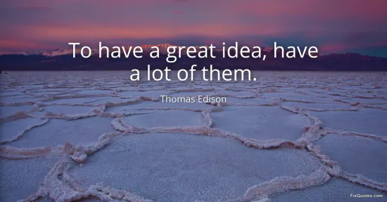 Edison, Thomas. (2026, January 18). To have a great idea, have a lot of them. FixQuotes. https://fixquotes.com/quotes/to-have-a-great-idea-have-a-lot-of-them-10268/