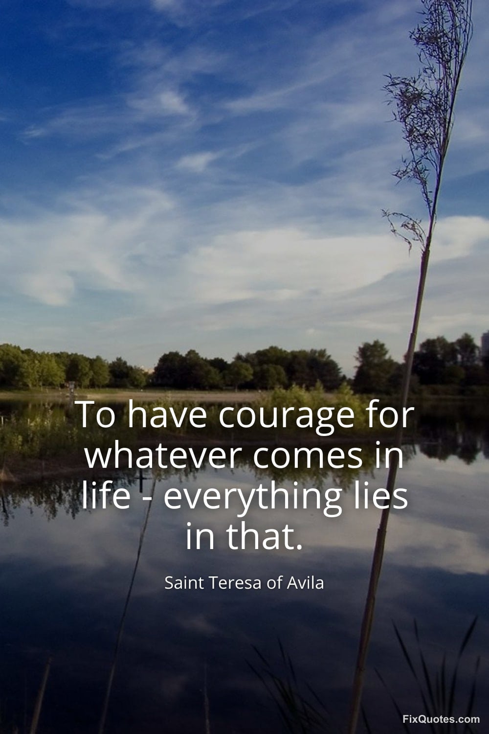 Avila, Saint Teresa of. "To have courage for whatever comes in life - everything lies in that." FixQuotes. January 18, 2026. https://fixquotes.com/quotes/to-have-courage-for-whatever-comes-in-life-1659/.