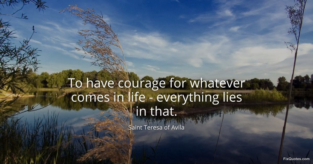 Avila, Saint Teresa of. (2026, January 18). To have courage for whatever comes in life - everything lies in that. FixQuotes. https://fixquotes.com/quotes/to-have-courage-for-whatever-comes-in-life-1659/