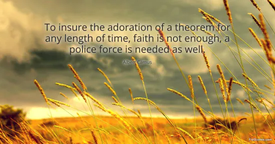 Camus, Albert. (2026, January 18). To insure the adoration of a theorem for any length of time, faith is not enough, a police force is needed as well. FixQuotes. https://fixquotes.com/quotes/to-insure-the-adoration-of-a-theorem-for-any-22910/