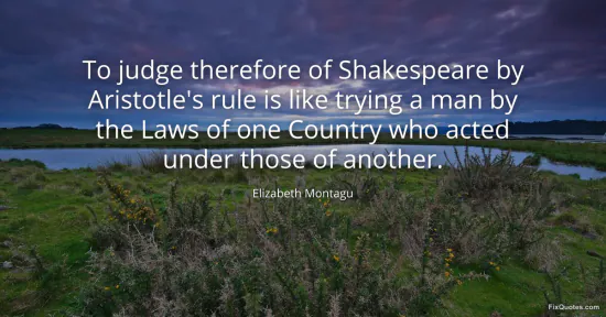 Montagu, Elizabeth. (2026, January 16). To judge therefore of Shakespeare by Aristotle's rule is like trying a man by the Laws of one Country who acted under those of another. FixQuotes. https://fixquotes.com/quotes/to-judge-therefore-of-shakespeare-by-aristotles-104561/