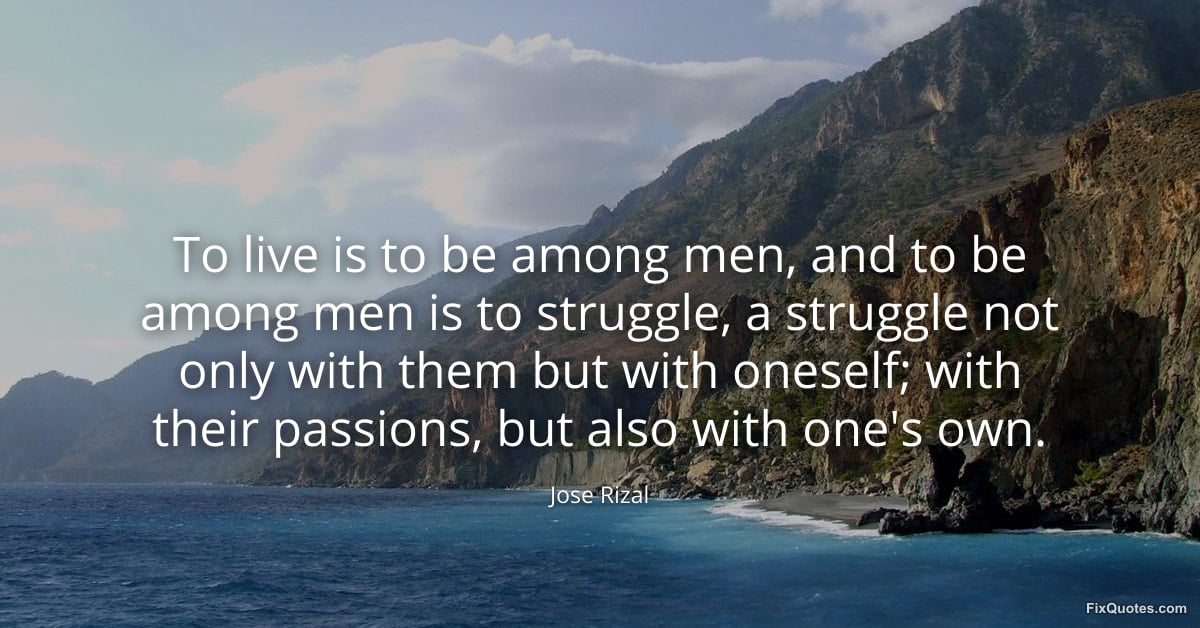 Rizal, Jose. (2026, February 10). To live is to be among men, and to be among men is to struggle, a struggle not only with them but with oneself; with their passions, but also with one's own. FixQuotes. https://fixquotes.com/quotes/to-live-is-to-be-among-men-and-to-be-among-men-is-185075/
