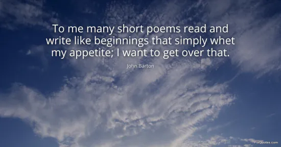 Barton, John. "To me many short poems read and write like beginnings that simply whet my appetite; I want to get over that." FixQuotes. January 17, 2026. https://fixquotes.com/quotes/to-me-many-short-poems-read-and-write-like-74742/.
