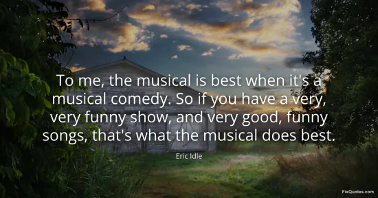 Idle, Eric. (2026, January 18). To me, the musical is best when it's a musical comedy. So if you have a very, very funny show, and very good, funny songs, that's what the musical does best. FixQuotes. https://fixquotes.com/quotes/to-me-the-musical-is-best-when-its-a-musical-4889/