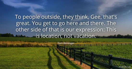 Berenger, Tom. (2026, February 17). To people outside, they think, Gee, that's great. You get to go here and there. The other side of that is our expression: This is location, not vacation. FixQuotes. https://fixquotes.com/quotes/to-people-outside-they-think-gee-thats-great-you-99419/