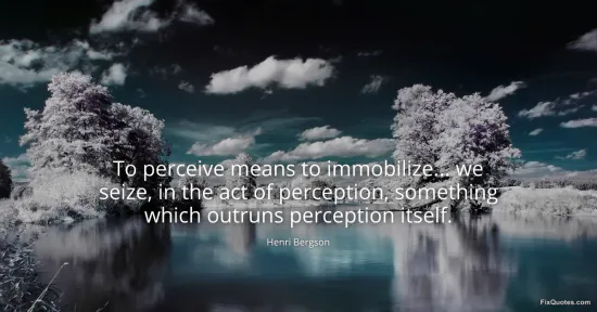 Bergson, Henri. (2026, January 17). To perceive means to immobilize... we seize, in the act of perception, something which outruns perception itself. FixQuotes. https://fixquotes.com/quotes/to-perceive-means-to-immobilize-we-seize-in-the-24123/