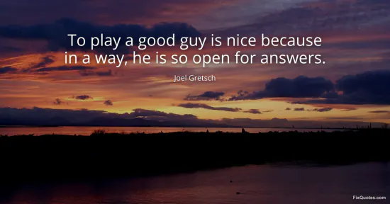 Gretsch, Joel. (2026, January 16). To play a good guy is nice because in a way, he is so open for answers. FixQuotes. https://fixquotes.com/quotes/to-play-a-good-guy-is-nice-because-in-a-way-he-is-122927/