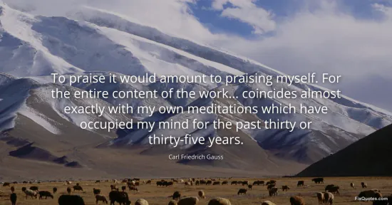 Gauss, Carl Friedrich. (2026, January 17). To praise it would amount to praising myself. For the entire content of the work... coincides almost exactly with my own meditations which have occupied my mind for the past thirty or thirty-five years. FixQuotes. https://fixquotes.com/quotes/to-praise-it-would-amount-to-praising-myself-for-51773/