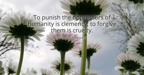 Robespierre, Maximilien. (2026, February 12). To punish the oppressors of humanity is clemency; to forgive them is cruelty. FixQuotes. https://fixquotes.com/quotes/to-punish-the-oppressors-of-humanity-is-clemency-168102/