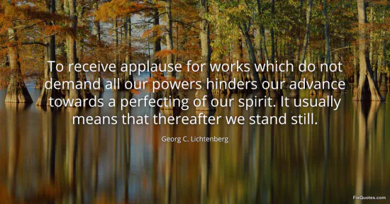 "To receive applause for works which do not demand all our powers hinders our advance towards a perfecting of our spirit. It usually means that thereafter we stand still"